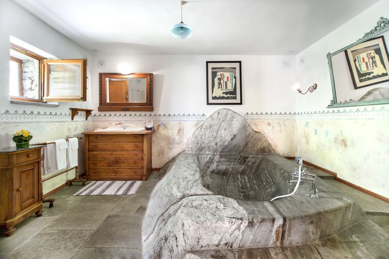 A rendere l’esperienza ancora più speciale è il bagno, unico nel suo genere, con una suggestiva vasca scolpita nella roccia.