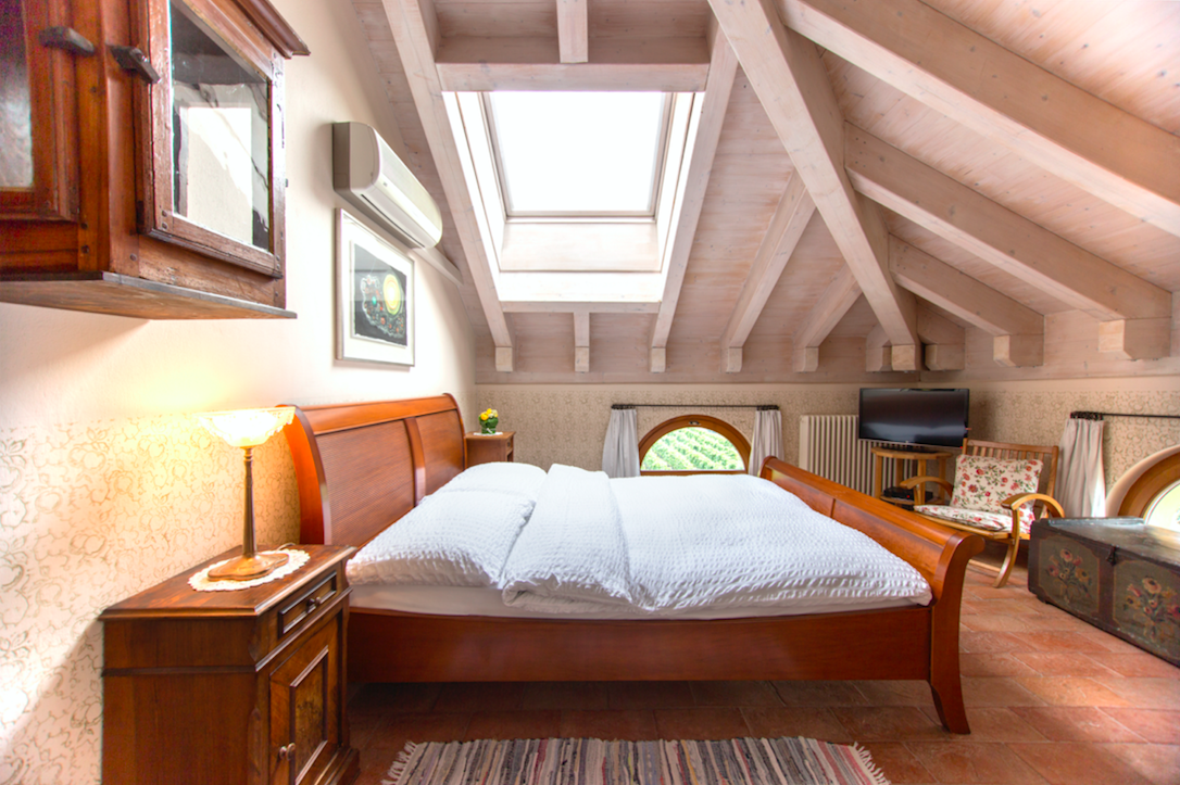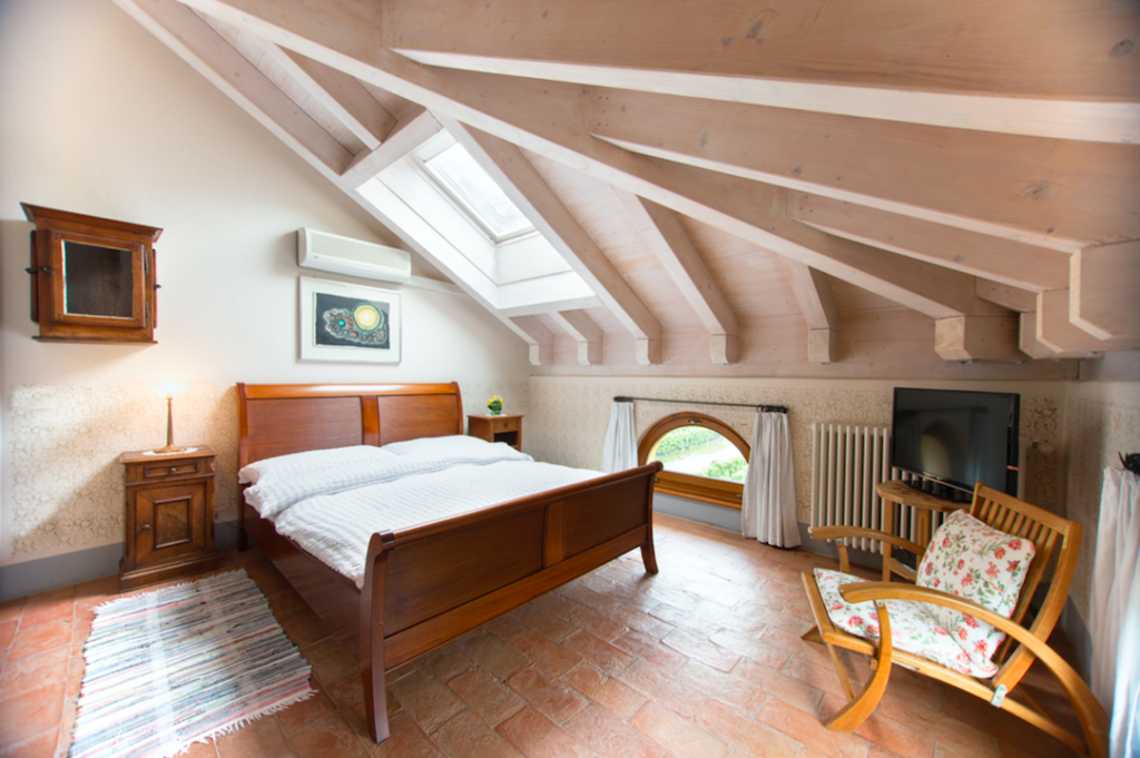 La 201 Merlot, situata al secondo piano, offre il fascino raccolto di una camera mansardata con travi a vista, dove calore e autenticità si fondono in modo naturale. Lo spazio, intimo e ricco di carattere, è pensato per chi desidera concedersi una pausa di benessere in un ambiente tranquillo e curato. Inserita nel paesaggio dei vigneti di L’Amorosa, è perfetta per vivere un soggiorno rilassante in un’atmosfera di grande serenità.